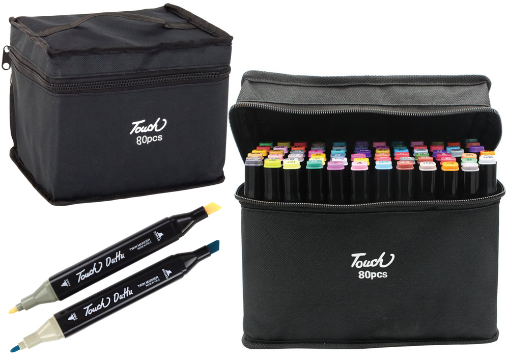 - Entdecken Sie 80 doppelseitige Marker in einer tragbaren Tasche. Die Anzahl und Vielfalt der Farbtöne erleichtert die Erstellung. Perfekt zum Zeichnen und Ausmalen. Dank der tragbaren Tasche sind sie immer griffbereit!