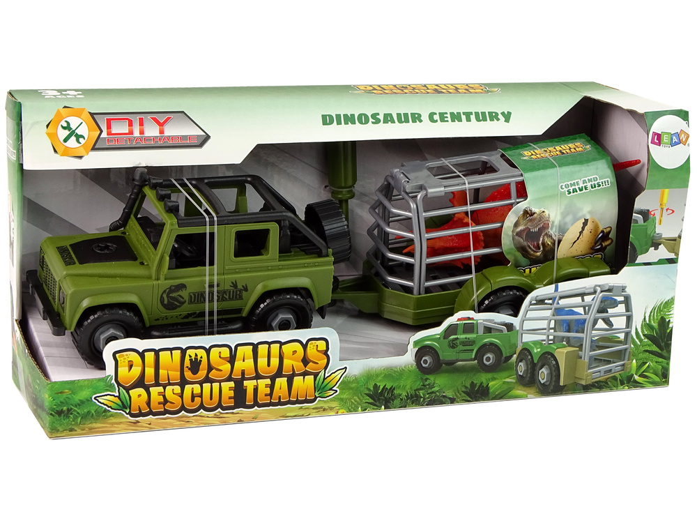 Der Anhänger hat die Form eines Käfigs, so dass der kleine Entdecker sicher sein kann, dass der Dinosaurier nicht entkommt oder sich verletzt. Er kann jederzeit abgenommen werden, um mit dem Geländewagen selbst zu spielen.