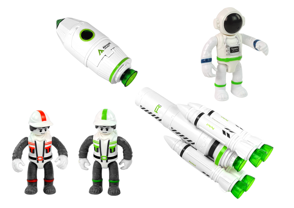 Das Set enthält die Nachbildung einer professionellen Raumstation, von der aus Raketen ins All geschossen werden. Der Kontrollturm enthält eine Konsole zur Steuerung und Kontrolle der Rakete. Für den Weg ins All gibt es zwei Möglichkeiten: den Flug mit der Rakete allein oder mit dem Spaceshuttle.