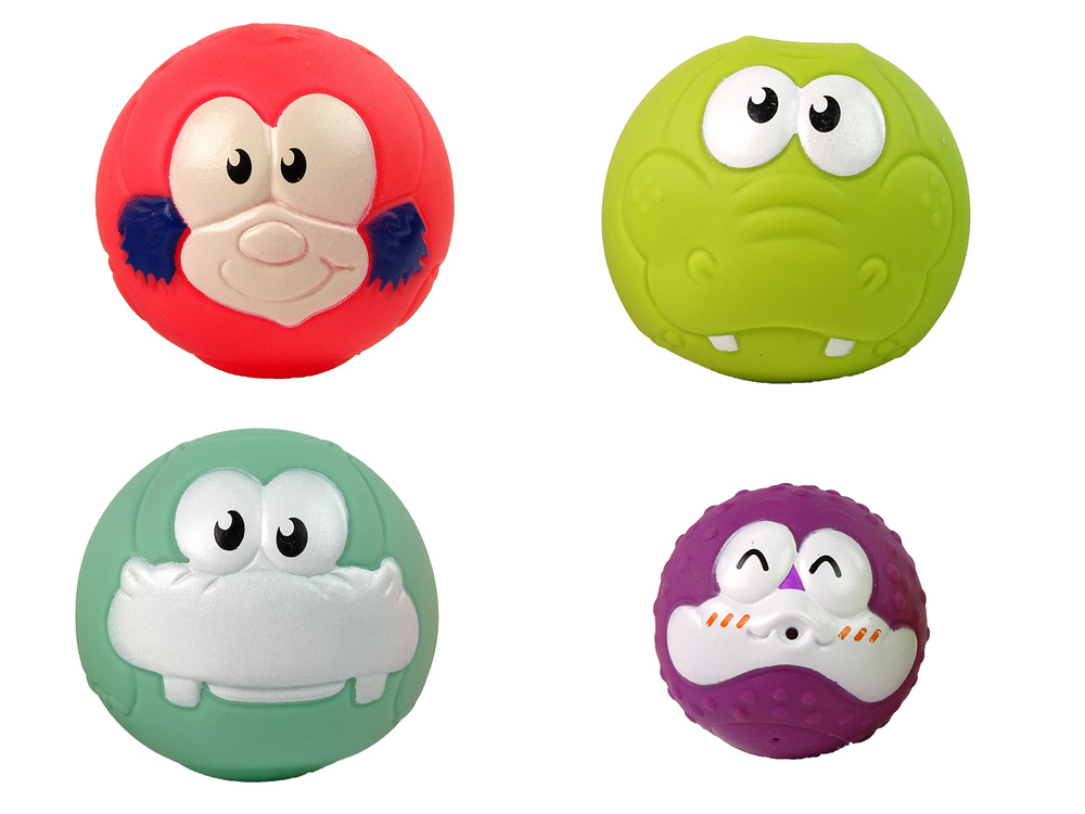 Die vier Kugeln haben winzige Löcher, in die Wasser fällt. Wenn das Spielzeug gedrückt wird, schießt das Wasser auf lustige Weise heraus, was Ihr Kind sicher amüsieren wird. Die Kugeln haben die Form von kleinen Tieren: Krokodil, Nilpferd, Fisch, Affe. Die im Badeset enthaltenen Tiere sind aus zertifizierten Materialien hergestellt, die für das Kind unbedenklich sind.