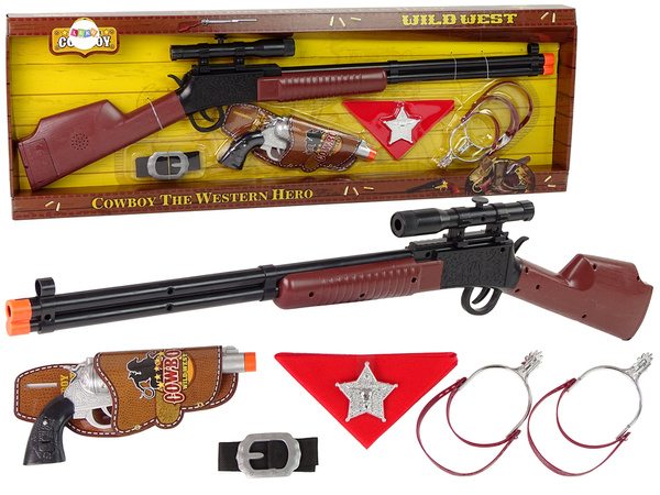 Das kleine Gewehr macht ein Geräusch wie ein echtes, drück den Abzug und du hörst das Geräusch eines Schusses. Die große Schrotflinte hat eine beachtliche Größe, du kannst das Ziel durch das Visier sehen und sehr präzise schießen, und du kannst das Geräusch des Schusses hören. Kein Dieb wird Ihnen entkommen! Das Zubehör verleiht Ernsthaftigkeit, macht Angst und verwandelt Ihr Kind in einen Texas Ranger. Stiefelsporen, ein Gürtel und Zeit zum Spielen! Das Set ermöglicht es, gemeinsam mit Gleichaltrigen zu spielen. Ihre Phantasie wird Sie nicht im Stich lassen!