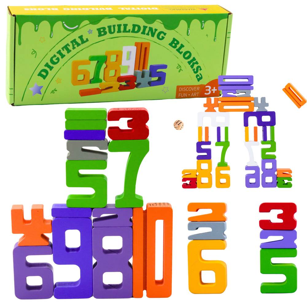 Ein Set aus 28 Holzklötzen in Form von Zahlen von 1 bis 10 ist ein hervorragendes pädagogisches Hilfsmittel, das das Kind auf natürliche und ansprechende Weise in die Welt der Zahlen einführt. Dank der unterschiedlichen Höhen der Blöcke wird das Erlernen des Addierens intuitiv und interaktiv – das Kind kann die Zahlen so übereinander stapeln, dass ihre Gesamthöhe der Summe der Werte der von ihnen dargestellten Zahlen entspricht.