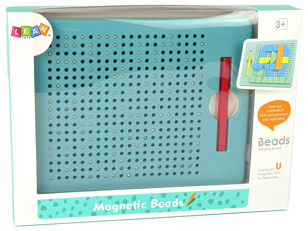 Jedes Bild kann leicht versteckt werden. Im Inneren der geschlossenen Tafel befinden sich Kugeln und auf der Oberfläche der Tafel Löcher. Wenn du die magnetisierte Stiftspitze über die Löcher bewegst, formen die Kugeln ein Meisterwerk. Was kann man tun, um das Bild verschwinden zu lassen? Bewege einfach eine flache Oberfläche oder deinen Finger über die Zeichnung und die Kugeln verstecken sich darin.