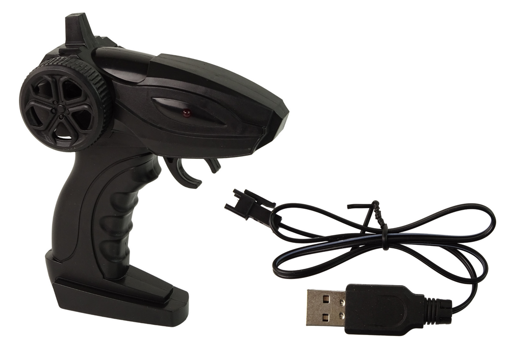 Im Set ist eine Fernbedienung enthalten, die eine präzise Steuerung des Fahrzeugs ermöglicht. Das Spielzeug kann sich vorwärts, rückwärts sowie nach rechts und links bewegen, was ein abwechslungsreiches und spannendes Spiel ermöglicht.