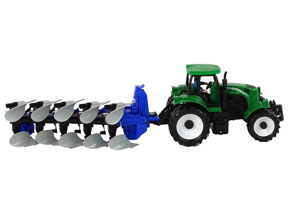 Traktor mit Pflug aus Kunststoff Grün Blau