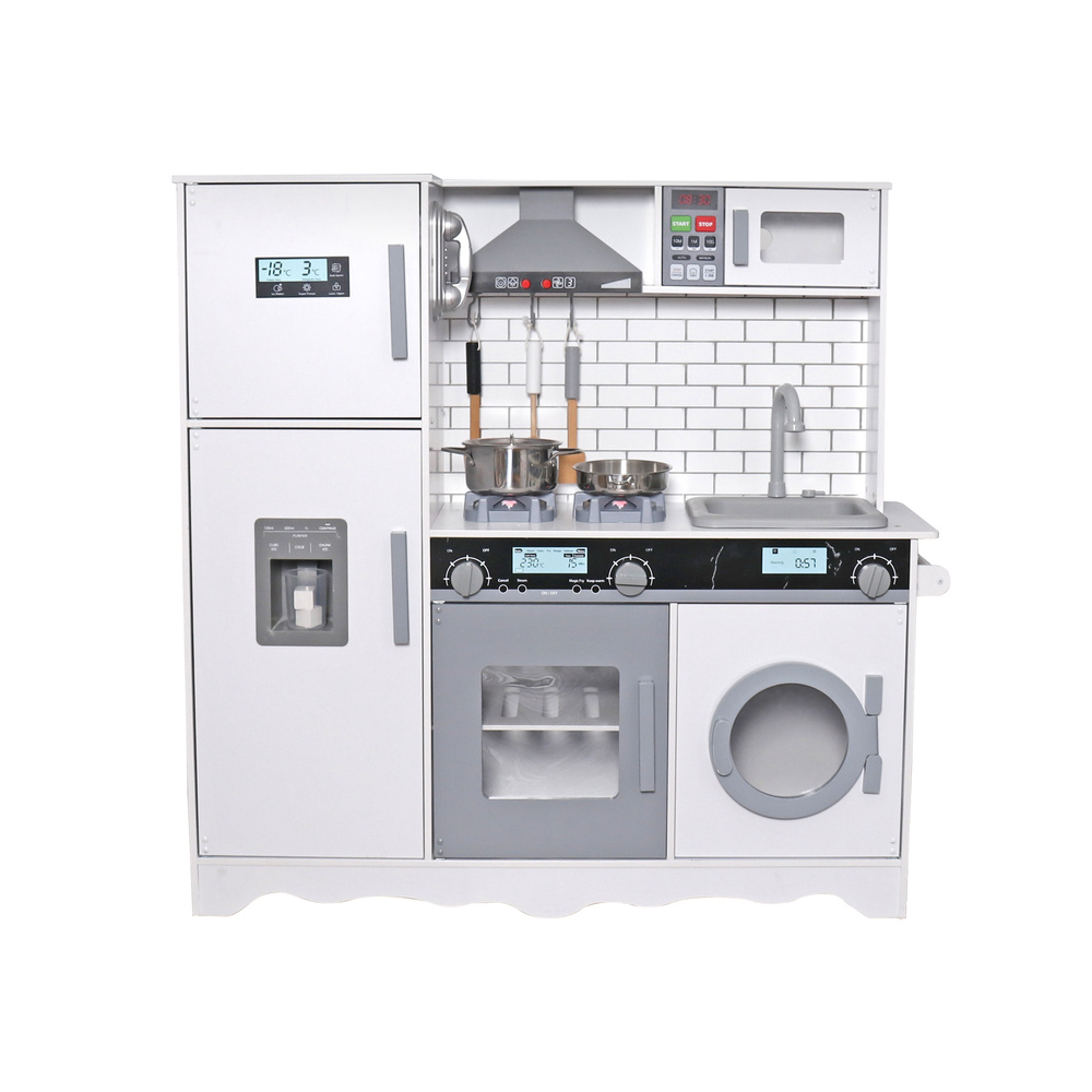 Amelia Holzküche mit weißer und grauer Haube, batteriebetriebener Herd