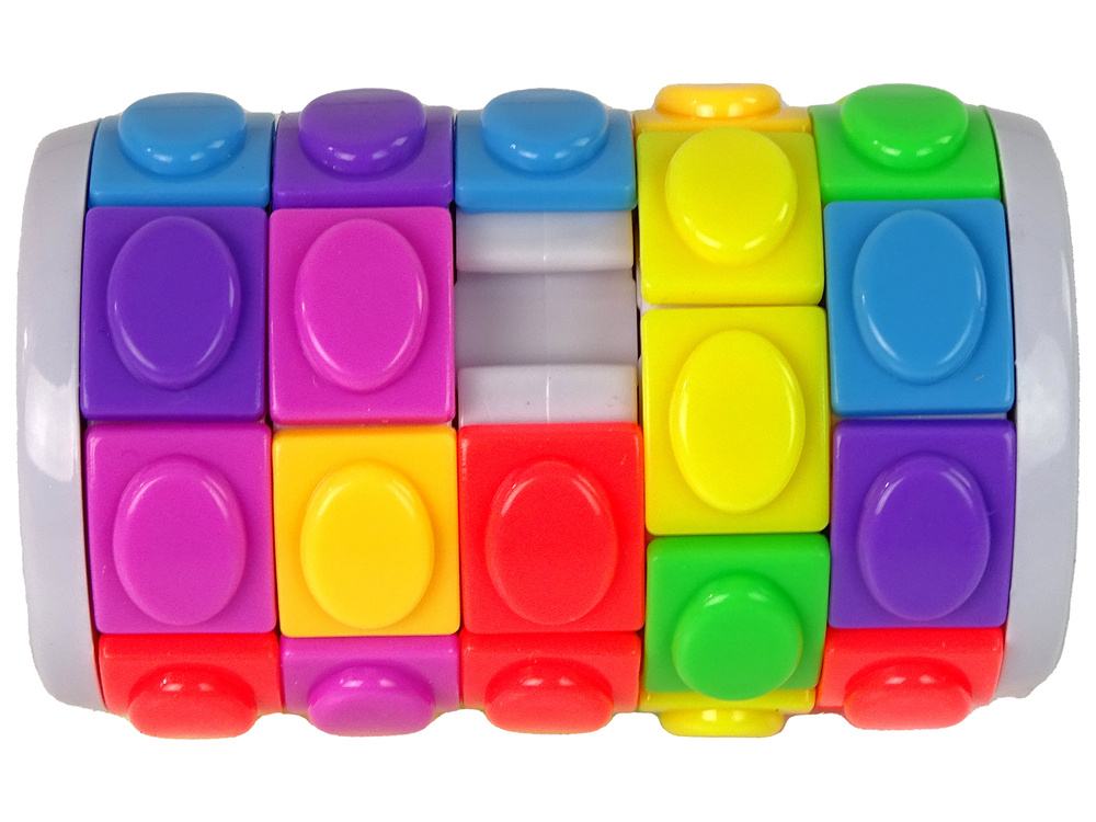 Das fünfstufige Logikpuzzle hat die Form eines Zylinders. Der Spaß besteht darin, die gleichen Farben in einer Reihe anzuordnen. Sie können die einzelnen Würfel nach oben verschieben und die Ringe um ihre Achse drehen. In einer der Reihen gibt es ein freies Feld, in dem man die farbigen Würfel verschieben kann.
