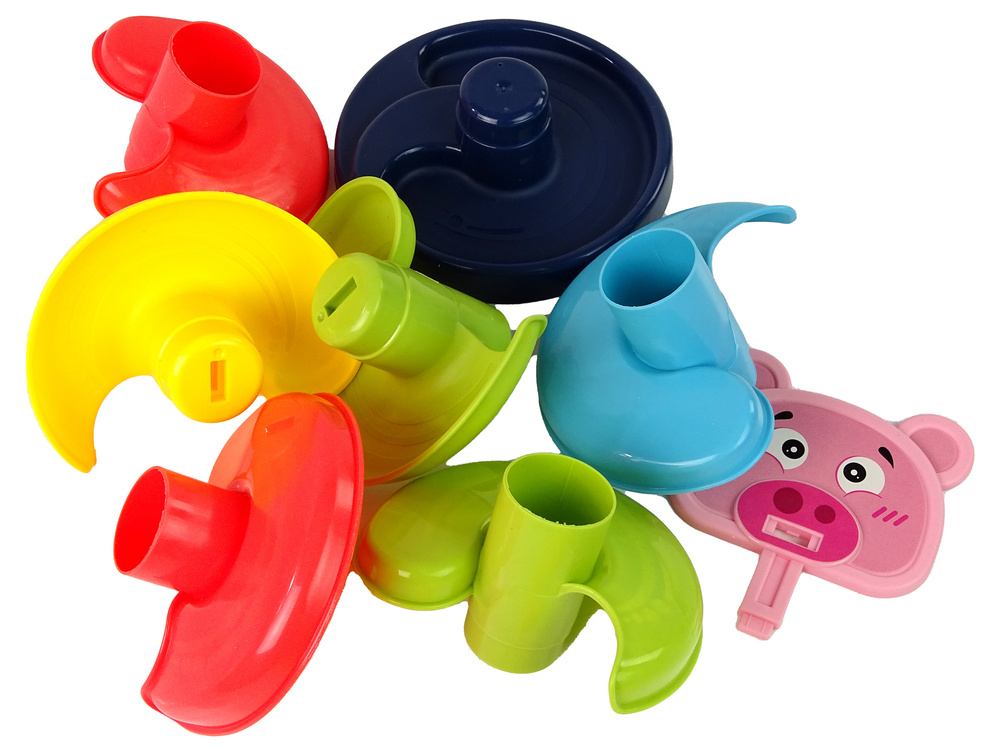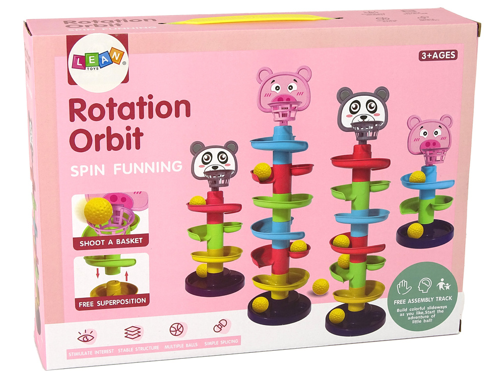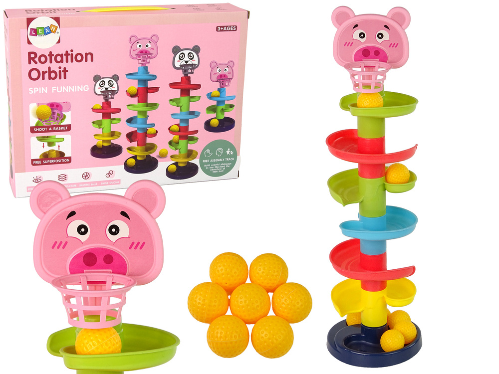 Die bunte Kugelrutsche macht Spaß und lehrt Ihr Kind, wie sich kugelförmige Formen auf schrägen Flächen bewegen. Die gelben Kugeln machen angenehme Geräusche, wenn sie rollen. Die Rutsche besteht aus 6 bunten Ebenen, die die vom Kind platzierte Kugel überwinden muss. Ganz oben befindet sich ein kleines Sparschwein mit einem Korb. Das spielende Kleinkind versucht, den Korb zu treffen und trainiert dabei Koordination, Genauigkeit und Geschicklichkeit.