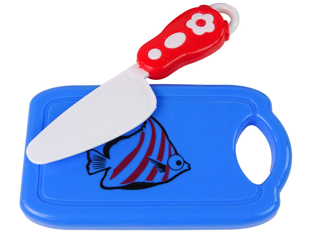 Im Set sind außerdem praktische Accessoires wie ein grüner Teller mit einem Durchmesser von 13 cm, ein blaues Schneidebrett (13 cm x 8 cm), ein grüner Löffel (12 cm) sowie eine rot-weiße Gabel und ein Messer (13 cm) enthalten. Alle Elemente wurden sorgfältig im Hinblick auf Sicherheit und Lernspaß entworfen.