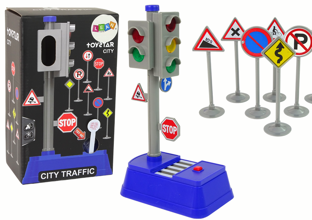 - Lern-Verkehrszeichen-Set: Ideal zum attraktiven und interaktiven Erlernen von Verkehrsregeln. Ein kompletter Satz grauer Ampeln (13 cm x 9 cm x 23 cm) sowie 8 Warn- und Verbotsschilder (Höhe 9 cm).