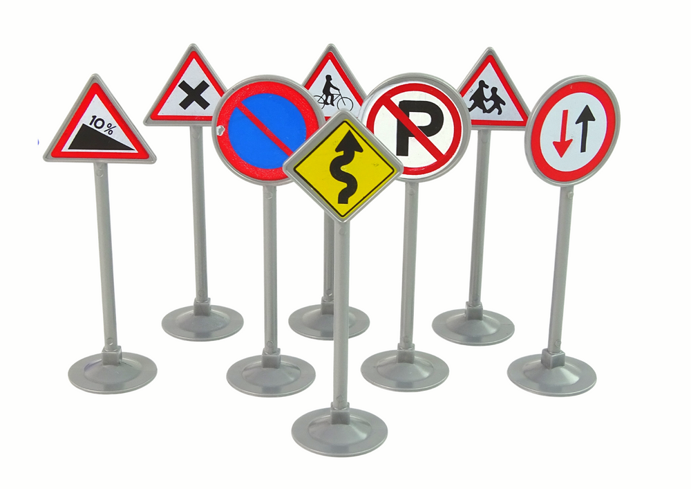 Im Lieferumfang sind außerdem acht 9 cm hohe Warn- und Verbotsschilder enthalten. Dank ihnen können sich Kinder mit verschiedenen Verkehrssymbolen vertraut machen und gleichzeitig ihr Sicherheitsbewusstsein entwickeln.
