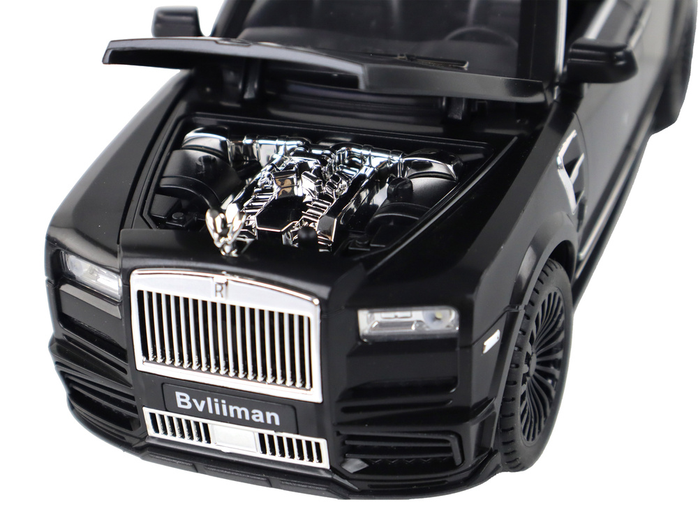 Bvliiman ist ein beeindruckendes ferngesteuertes (RC) Automodell im Maßstab 1:20, das durch seinen Realismus und seine Eleganz beeindruckt. Die Farbe des Fahrzeugs ist hauptsächlich schwarz, was ihm ein einzigartiges Aussehen verleiht, hervorgehoben durch silberne Einsätze, die ihm Prestige verleihen. Das Auto ist so gestaltet, dass es einem echten Auto ähnelt, mit aufklappbaren Türen, durch die Sie den gesamten Innenraum sehen können.
