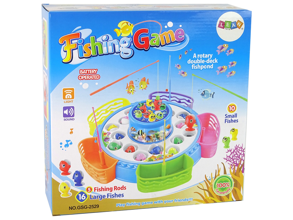 Es enthält fünf bunte Fischkörbe, die Spaß für bis zu fünf Spieler ermöglichen. Kinder treten gegeneinander an und versuchen, so viele Fische wie möglich zu fangen und dabei ihre Geschicklichkeit und motorische Koordination zu verbessern.