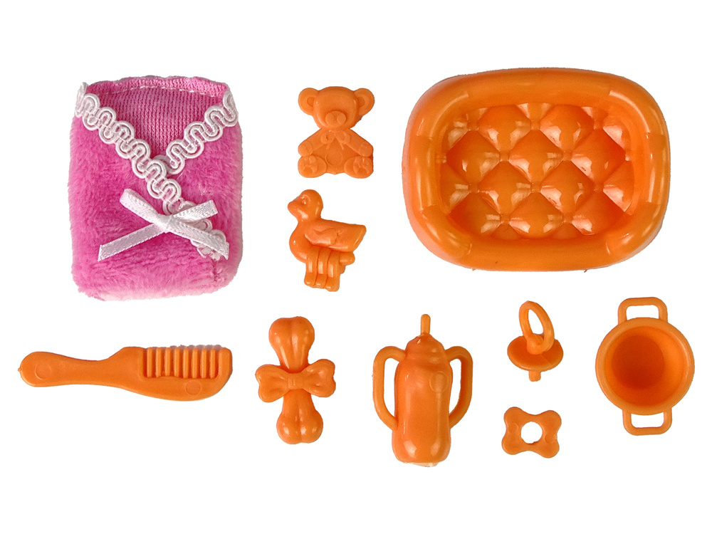 Und das ist noch nicht das Ende der Attraktionen! Das Set ist reich an zahlreichen Accessoires wie Kamm, Topf, Schnuller, Badeente, Flasche, Babyspielzeug, Knochen, Teddybär und Lauflernhilfe (10 cm x 8 cm x 6 cm) – perfekt für die Pflege eines Kleinen „Baby“ ein Held. Darüber hinaus verfügt die Puppe über ein Schlafset für ein Kind, wodurch ein umfassendes Set für umfassendes und spannendes Spielen entsteht.