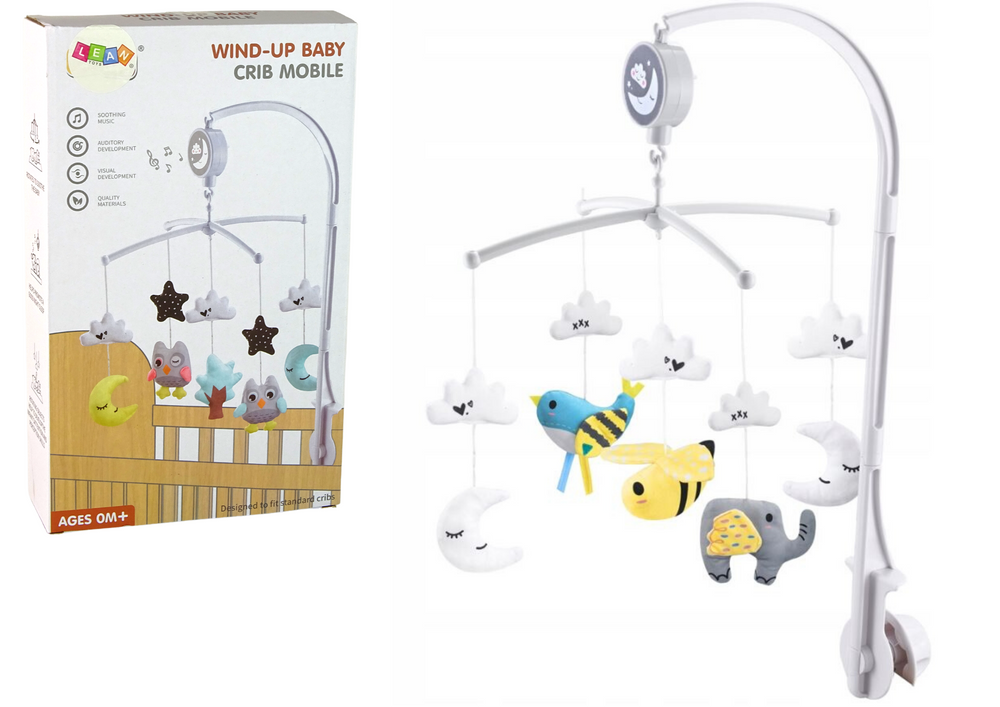 Das Spielzeug wird sich positiv auf die Entwicklung des Babys auswirken. Durch die Beobachtung der gleichmäßigen, langsamen Bewegung der Anhänger verbessert das Kind seinen Sehsinn und entwickelt seine natürliche Neugier auf die Welt. Die Melodie wirkt sich positiv auf die Hörentwicklung aus, wirkt entspannend und das Baby fühlt sich sicher.