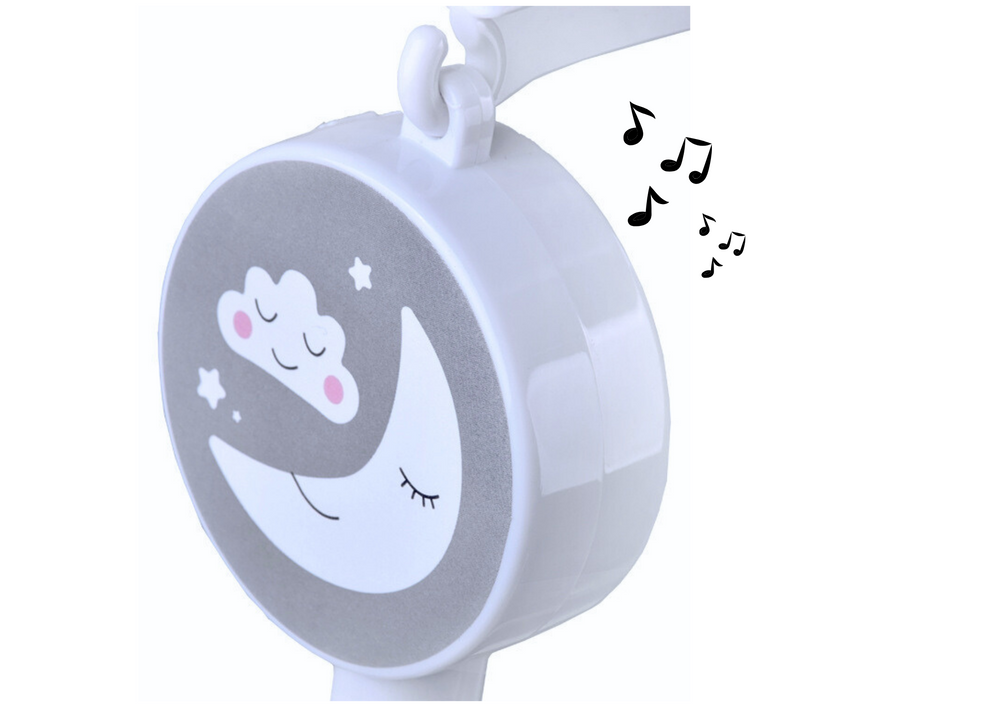 Nach dem Aufziehen dreht sich das Karussell um 360° und spielt dabei ständig eine Melodie. Es verfügt über einen EIN/AUS-Schalter, mit dem Sie das Schlaflied bei Bedarf schnell stoppen können. Das Karussell besteht aus hochwertigem Kunststoff.