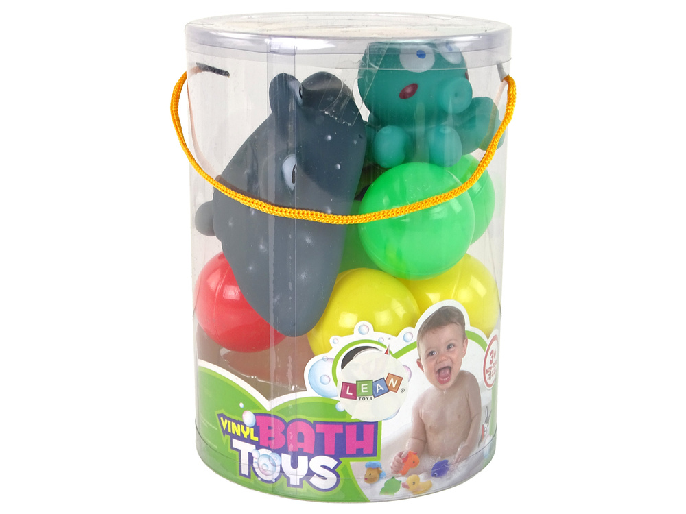 - Ein Set aus Badespielzeugen aus Gummi – niedliche Tiere, Bälle, die Koordination und Fantasie fördern. Verpackungsmaße: 19 cm x 14 cm x 14 cm. Genießen Sie lustige Bäder!