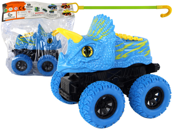 - Es handelt sich um ein blaues Fahrzeug in Form eines Dinosauriers, ausgestattet mit großen Gummirädern und einem Friktionsantrieb. Es verfügt über realistische Details und das Ganze besteht aus strapazierfähigem Kunststoff.