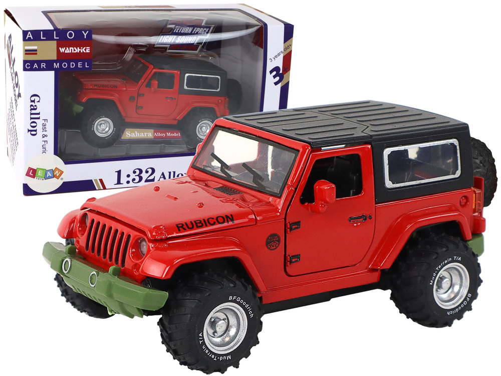 Dieses Geländefahrzeug verfügt über viele erstaunliche Funktionen. Das Öffnen von Türen und Motorhaube ermöglicht einen genaueren Blick auf den Innenraum des Fahrzeugs, und Gummireifen sorgen für hervorragenden Grip, sodass Sie verschiedene Geländearten überwinden können. Das Auto wird von einem Friktionsantrieb angetrieben, was bedeutet, dass Sie es nur zurückziehen und dann loslassen müssen, um dynamisches Fahren zu genießen.
