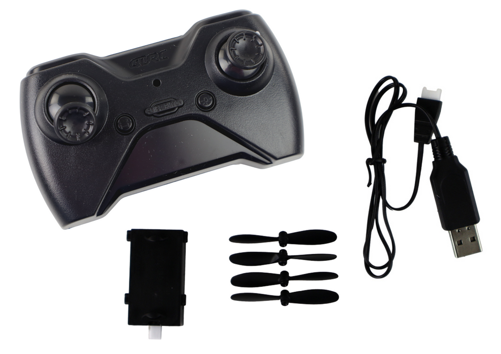 Im Set sind außerdem vier austauschbare Propeller und ein Akku-Ladekabel enthalten.