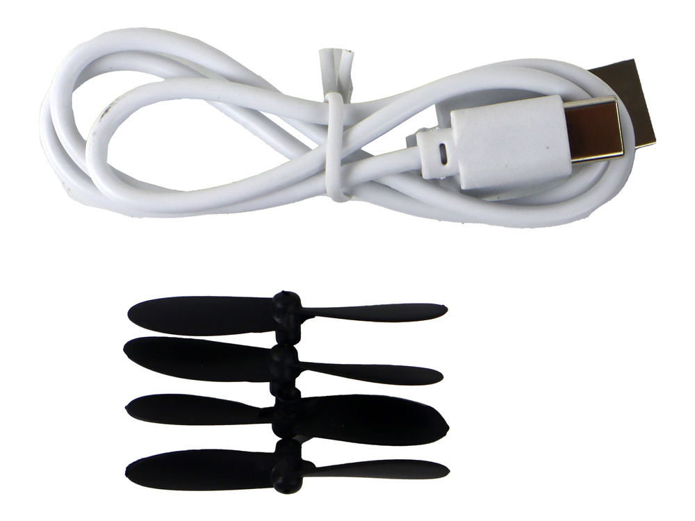 Im Set sind außerdem vier austauschbare Propeller und ein Ladekabel enthalten.