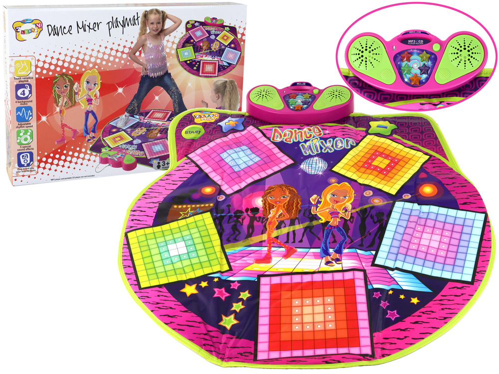 - Tanzmatte für Kinder – lila, 91 x 93 cm. Musik, Lichter, Kreativität. Benötigt 4 AA-Batterien (nicht im Lieferumfang enthalten). Feldbeleuchtung, Möglichkeit zum Anschluss eines Telefons, Tempo- und Lautstärkeregelung.