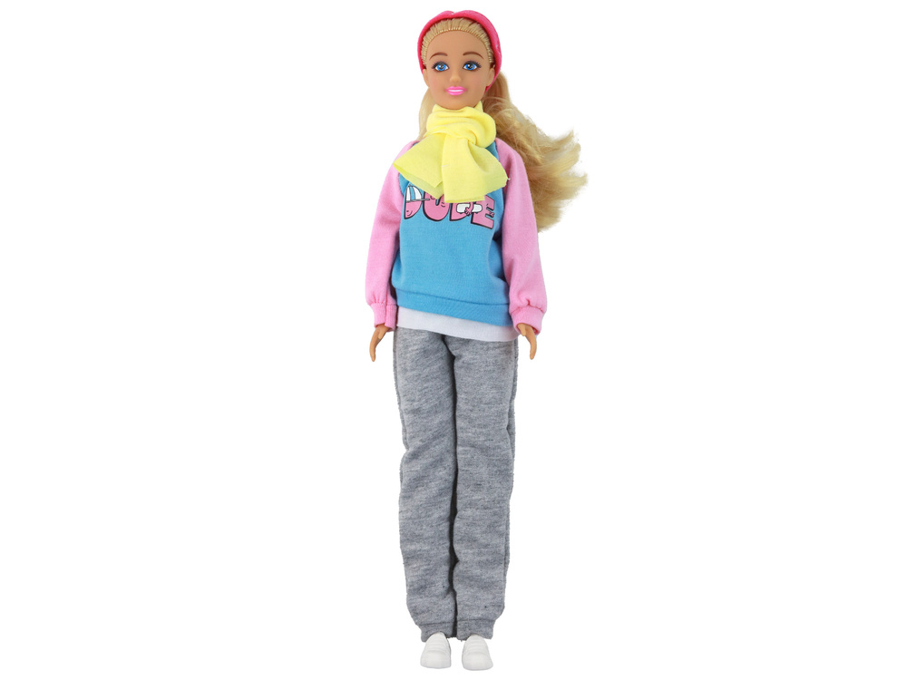 Die Anlily-Puppe sieht bezaubernd aus in einem Winteroutfit bestehend aus einem warmen Sweatshirt, grauen Jogginghosen, einem gelben Schal und einem bezaubernden rosa Stirnband. Ihr elegantes und praktisches Outfit passt perfekt zum Winterklima und verleiht ihm Charakter und Charme.