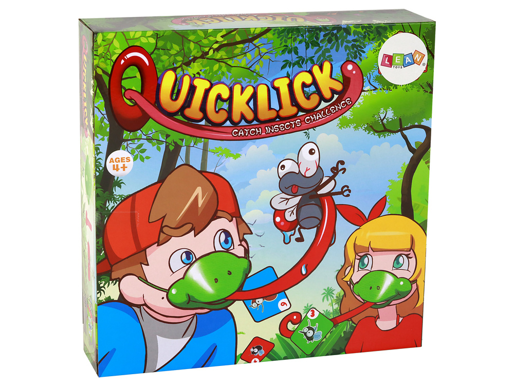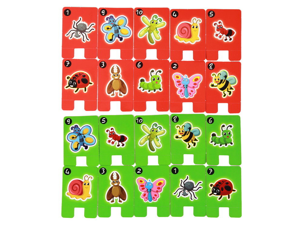 Spieler mit Masken sitzen sich gegenüber. Wir legen eine Reihe grüner Insekten auf den Tisch. Der Einfachheit halber ist jedem von ihnen eine Nummer zugewiesen. Der Dealer mischt die roten Karten und legt dann eine auf den Tisch. Die Aufgabe der Spieler besteht darin, das gezogene Insekt so schnell wie möglich niederzuschlagen. Wer zuerst die Karte mit dem gezogenen Insekt entdeckt und mit der einklappbaren Zunge niedergeschlagen hat, erhält die rote Karte. Letztendlich gewinnt die Person mit den meisten Karten.