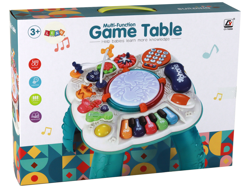 - Ein pädagogischer und musikalischer Tisch für Kinder ist ein interaktives und kreatives Werkzeug, das die Entwicklung von Kindern durch das Spielen mit Geräuschen und Licht und das Erlernen grundlegender Fähigkeiten fördert.