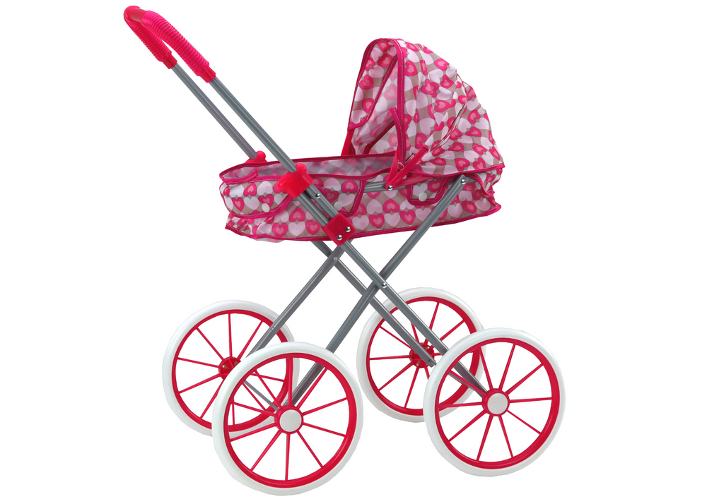 Puppenwagen Große Räder Faltbar Rosa Herzen ⭐