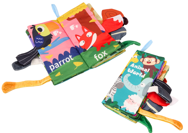 - Ein Stoffbuch mit Tieren ist ein interaktives und lehrreiches Spielzeug für die Kleinsten. Aus angenehmem Material gefertigt, mit raschelnden Elementen und Tiersignaturen auf Englisch, fördert es die Sinne des Kindes und regt seine Entwicklung an.