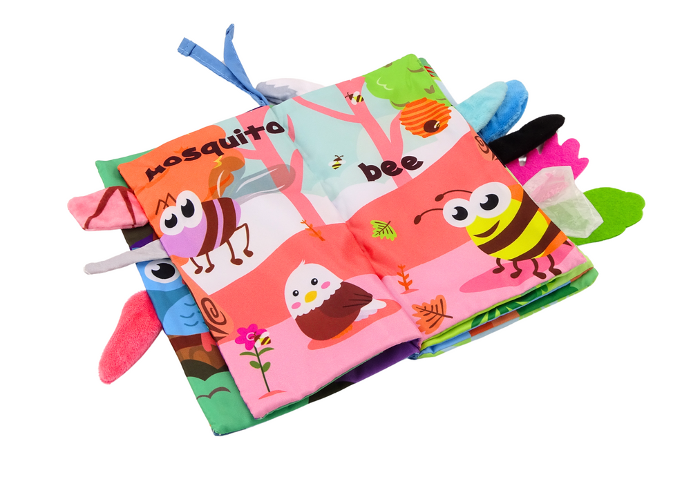 Die raschelnde Struktur der Seiten und hervorstehende Elemente unterstützen die Entwicklung des Tast- und Hörsinns.