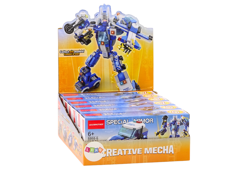 Das Set umfasst Polizeifahrzeuge in verschiedenen Ausführungen, wie zum Beispiel ein Motorrad, ein Boot, ein Flugzeug und Geländefahrzeuge. Jedes Modell zeichnet sich durch ein einzigartiges Design und eine einzigartige Konstruktion aus, was das Set äußerst attraktiv und interessant macht. Jedes Modell besteht je nach Ausführung aus 69 bis 106 Elementen. Sorgfältig gefertigte Blöcke sorgen für eine einfache Montage und Haltbarkeit der Struktur.