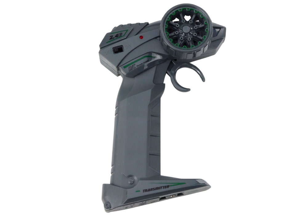 Gesteuert wird das Auto über eine moderne 2,4G-Fernbedienung, die einen vollen Bewegungsumfang bietet. Die 2,4G-Technologie ermöglicht eine stabile und störungsfreie Verbindung und eliminiert Störungen, was besonders wichtig ist, wenn Sie an Orten fahren, an denen es viele andere ferngesteuerte Geräte gibt. Mit der Fernbedienung können Sie das Fahrzeug präzise steuern und so sanfte Vorwärts-, Rückwärts-, Links- und Rechtsmanöver gewährleisten. Dadurch hat der Benutzer die volle Kontrolle über das Auto, was ihm ermöglicht, komplexe Manöver durchzuführen und dynamisches Fahren zu genießen.