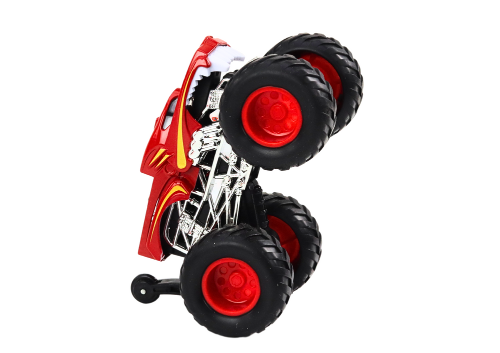 Dieses Geländefahrzeug verfügt über eine solide Konstruktion, die Haltbarkeit und Haltbarkeit bei intensivem Spielen gewährleistet. Das charakteristischste Element des Fahrzeugs sind seine großen Gummiräder. Diese massiven, gut profilierten Reifen garantieren hervorragenden Grip und Stabilität auf verschiedenen Untergründen. Dank ihnen kann das Auto problemlos unebenes Gelände überwinden und sorgt so für eine reibungslose und sichere Fahrt.