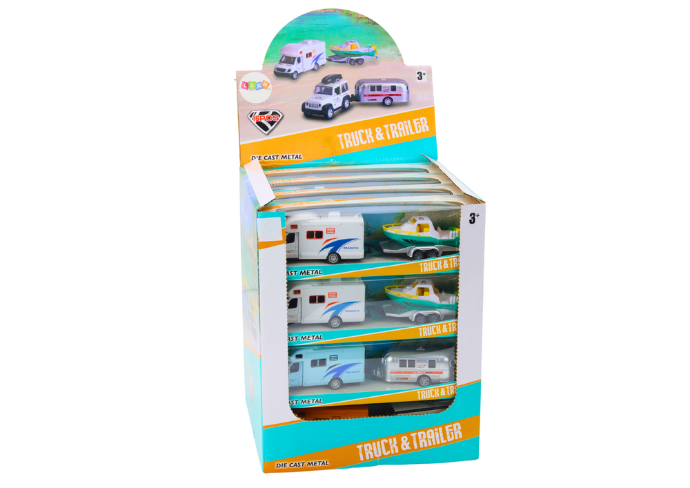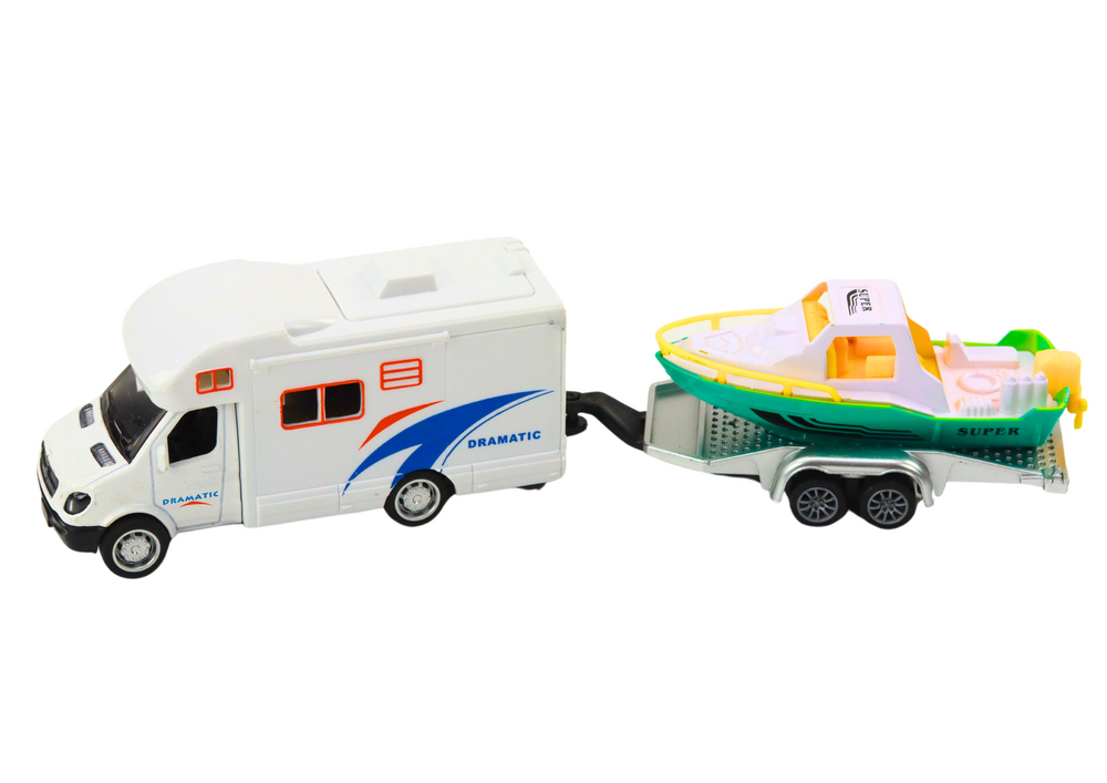 - Metall-Geländewagen mit Boot oder Wohnmobil sorgt für stundenlangen Spaß. Hergestellt aus hochwertigen Materialien, mit Friktionsantrieb und kompakten Abmessungen.