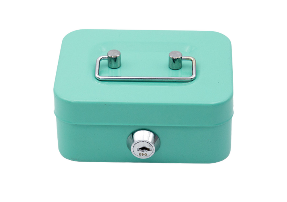 Sparschwein-Aufbewahrungsbox, abschließbar, zwei Schlüssel, Metall, Türkis