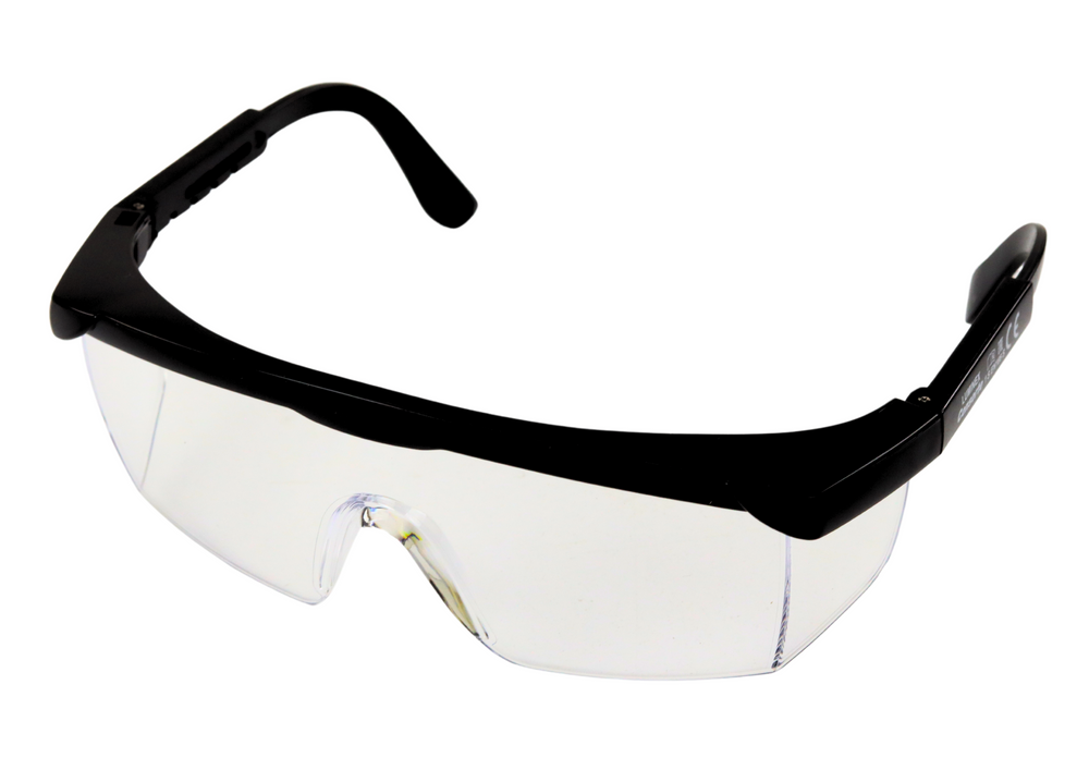 - Optische Schutzbrillen der Klasse 1 verfügen über verstellbare Bügel, mit denen Sie die Länge anpassen können, und einen schwarzen Rahmen.