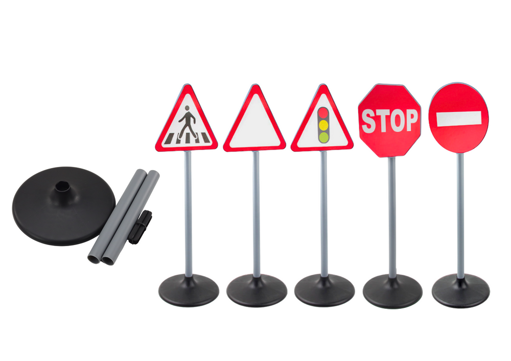 - Das Lernset „Verkehrszeichen“ enthält fünf große Warnschilder, die Kindern die Verkehrsregeln vermitteln. Kinder entwickeln beim Spielen motorische Fähigkeiten und Kreativität. Perfekt für Zuhause und Kindergarten.