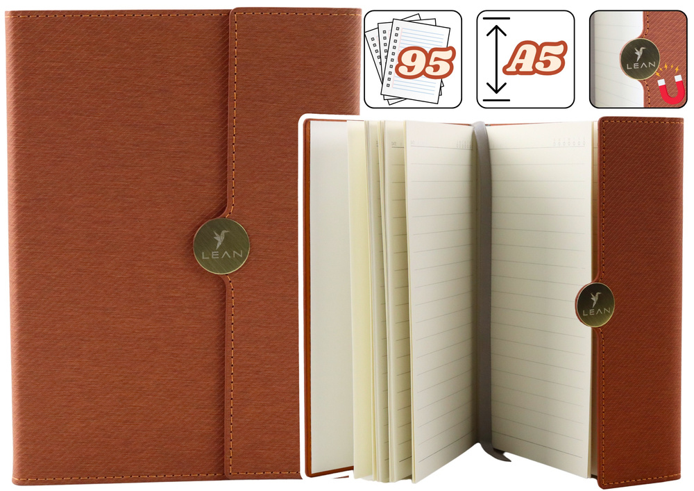 Magnetisches Büro-Notizbuch, liniertes A5 Notizbuch mit brauner Polsterung