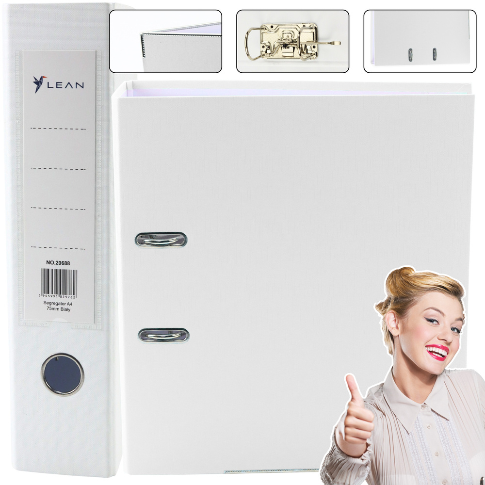 Der A4 Dokumentenordner mit einem breiten 75 mm Rücken in elegantem, klarem Weiß ist ideal zur Aufbewahrung von Dokumenten im Büro, zu Hause und zur Organisation von Schulmaterialien. Dieser geräumige Ordner bietet Platz für bis zu 500 Blätter (mit einem Gewicht von 80 g/m²), was ihn zu einer hervorragenden Lösung für die Archivierung von Rechnungen, Verträgen, Berichten und anderen wichtigen Dokumenten macht. Die hochwertige Verarbeitung sorgt dafür, dass der Ordner zuverlässig und langlebig ist.