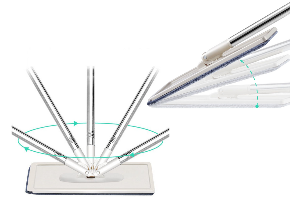 Der Zweikammer-Eimer-Mopp ist ein innovatives Werkzeug, das komfortables und hygienisches Reinigen ermöglicht. Mit seinem flachen Mopkopf erreicht er schwer zugängliche Bereiche wie Ecken, Platz unter Möbeln und entlang von Sockelleisten, wodurch das Reinigen einfach, schnell und gründlich wird. Ausgestattet mit einem Zweikammer-Eimer trennt er sauberes Wasser von schmutzigem Wasser, was die Hygiene und den Komfort erhöht, ohne dass die Hände nass werden müssen.