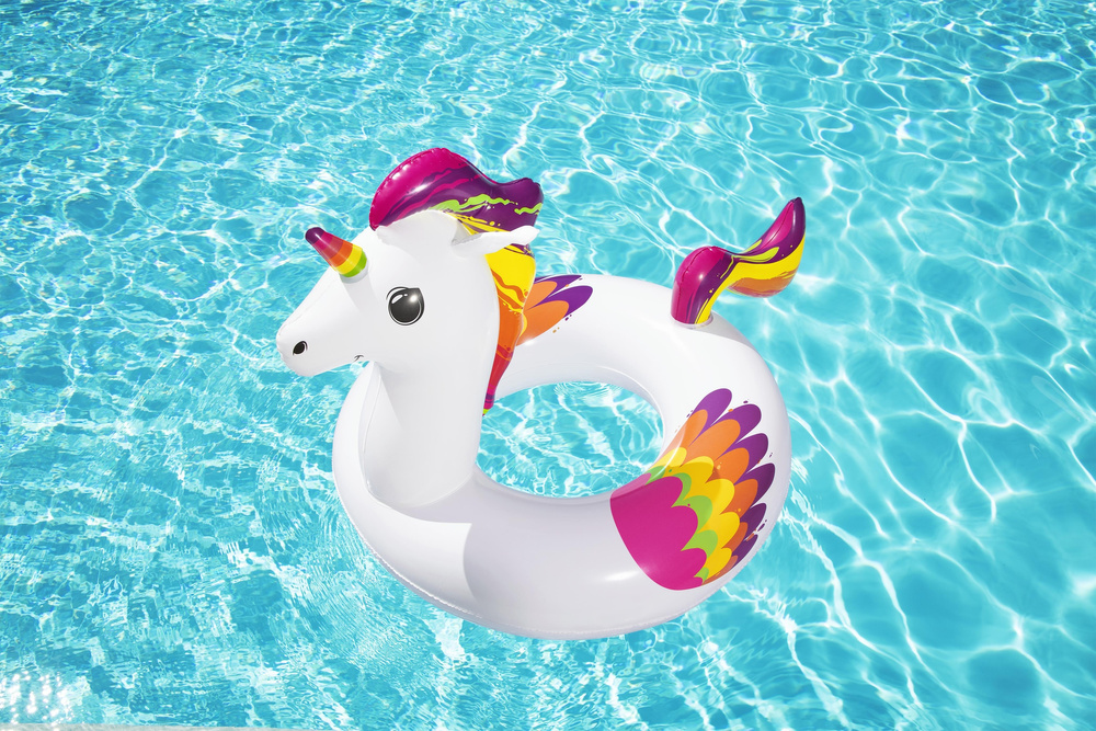 - Der Einhorn-Schwimmring ist der perfekte Begleiter für Sommerspaß und begeistert Kinder und Erwachsene gleichermaßen. Er vereint Funktionalität und Komfort mit einem märchenhaften Design, das am Strand und im Pool für Aufsehen sorgt.