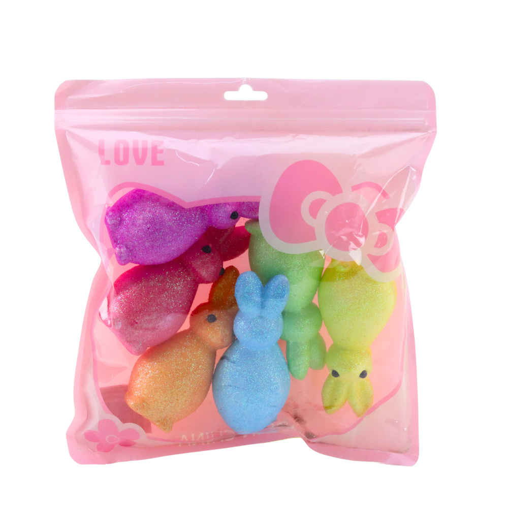 - 6 Schaumstoff-Hasen, mit Glitzer überzogen (Gelb, Blau, Rosa, Grün, Orange, Lila)
