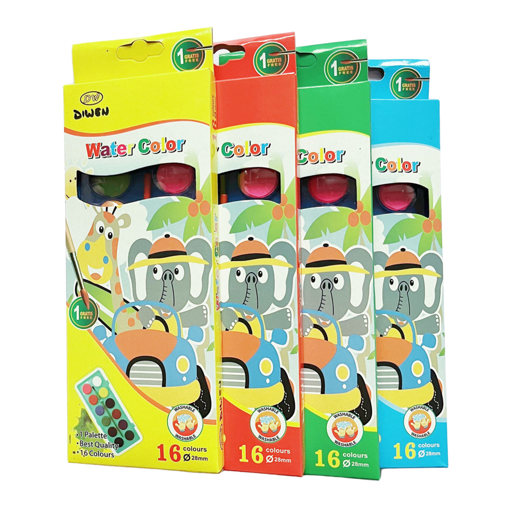 Satz Aquarellfarben für die Schule, 16 Farben, Pinsel