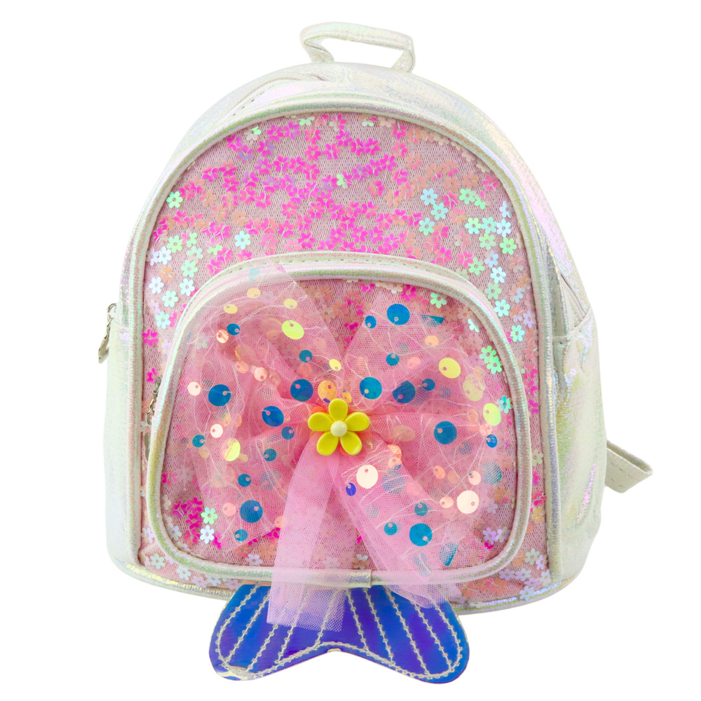 Kinderrucksack Pailletten Tüll Schleife Weiß 20cm 3,8L