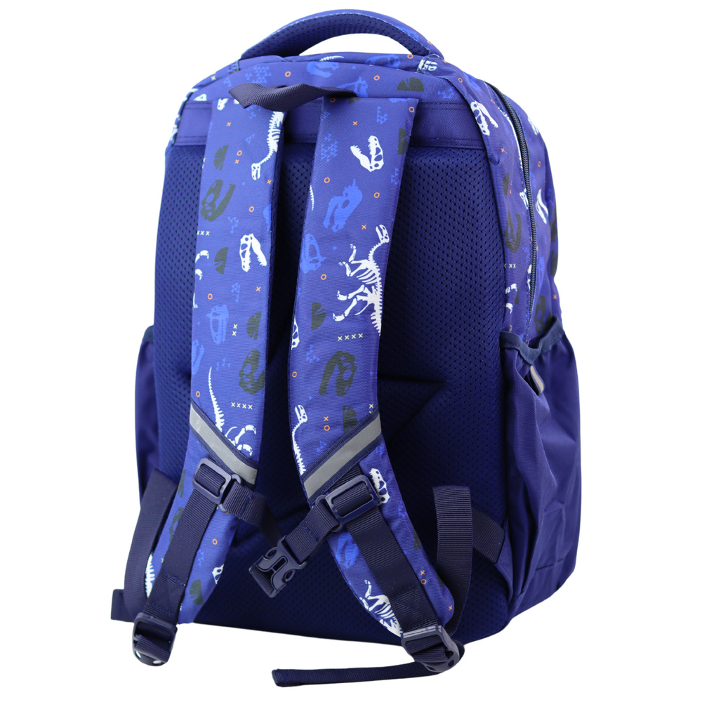 Schulrucksack Dinosaurier Patch T-Rex Brustgurt Marineblau 20L