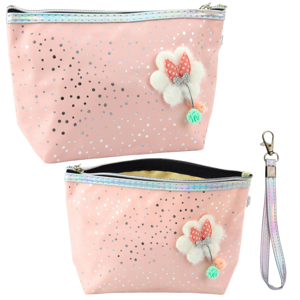 Federmäppchen Kosmetiktasche Schleife Glänzende Punkte Puderrosa 23x16cm