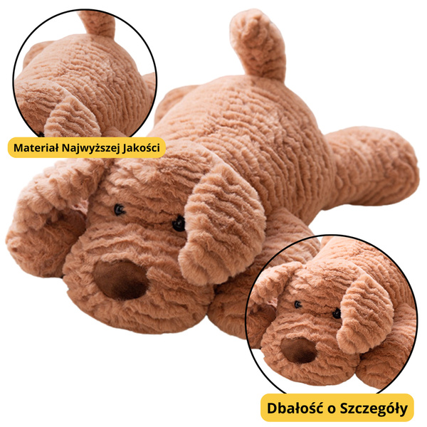 - Der beige Plüschhund ist ein bezauberndes und außergewöhnlich weiches Kuscheltier, das garantiert zum besten Begleiter jedes Kindes wird. Hergestellt aus einem äußerst zarten und angenehm anzufassenden Material.