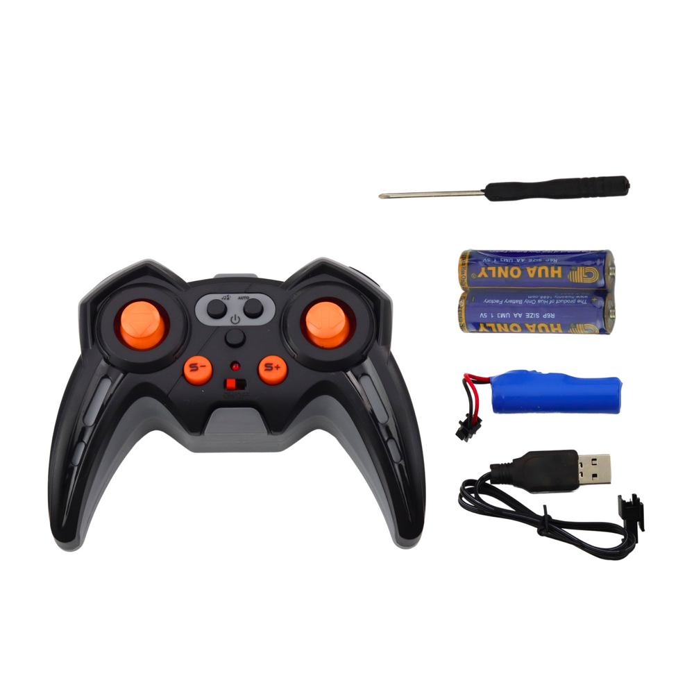 Die Steuerung des Sets erfolgt über eine praktische 2,4-GHz-Fernbedienung. Mit ihr können Sie vorwärts, rückwärts, links und rechts abbiegen sowie Sound- und Lichteffekte aktivieren. Dank der hochwertigen Verarbeitung und der dynamischen Funktionen eignet sich das Spielzeug perfekt für drinnen und draußen – im Garten, auf der Terrasse oder dem Spielplatz.